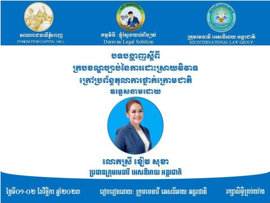 SDI International Law Group,founded and chaired by Mrs. Khiev Sokha, was established and registered on June 14, 2023. The law group is situated in Borey Peng Huoth, The Star Munirah, 51 & 51A, National Road 6A, Sangkat Prek Leap, Khan Chroy Changva, Phnom Penh.
